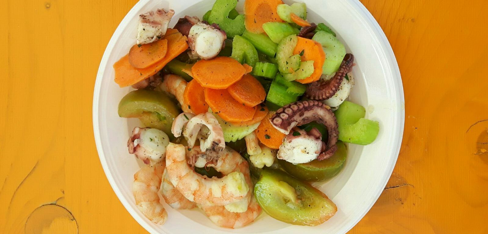 By the seaside, in Bari, I happily enjoyed the only thing the little shack had to offer (shrimp and octopus in the cover picture).