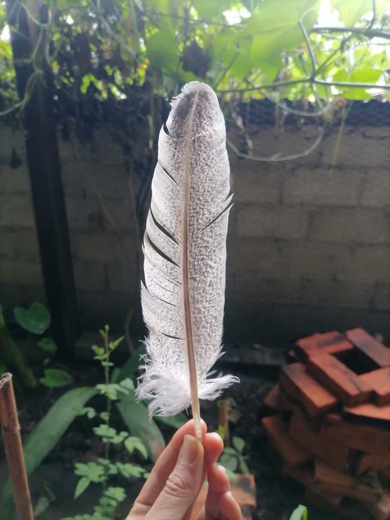 On the last day I went for a walk to see the ancient tree Luna to say my goodbyes. As I sat on a little tree trunk, there it was, a beautiful white feather, as if it had been placed there for me to find. I don’t know for sure whether it is an owl feather or not but when I found it, I held it and sobbed and laughed, as it felt like a gift from God, saying “ask with your heart and you shall receive”.